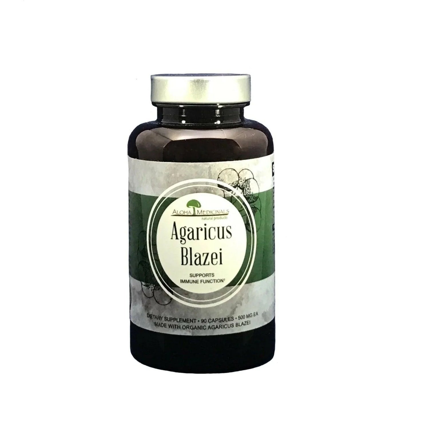 Agaricus Blazei - 90 Capsules by Aloha Medicinals is a supplement product derived from Agaricus Blazei, a well-known medicinal mushroom. Each bottle contains 90 capsules, with each capsule providing a 500mg dose of pure Agaricus Blazei. The mushrooms used in this product are organic and cultivated in a highly controlled environment, ensuring the highest quality and purity.