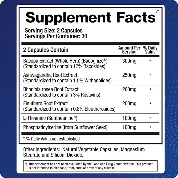- Ashwagandha (root) Extract 100 mg