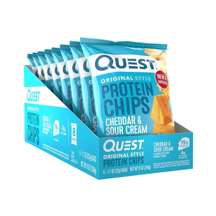 Quest Nutrition Protein Chips 8x32g Cheddar & Sour Cream offer a delicious and nutritious snacking option for health-conscious individuals. Crafted by Quest Nutrition, these protein chips are designed to provide a satisfying crunch while supporting your dietary goals. Each serving contains a substantial amount of protein, making them an excellent choice for those looking to increase their protein intake without compromising on taste.