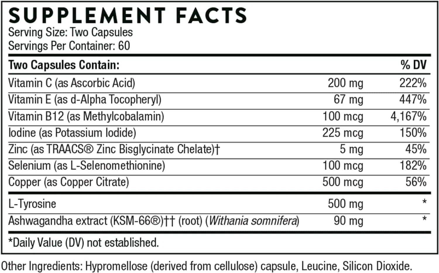 Each bottle contains a total of 120 veggie capsules. The main ingredients of these capsules include iodine, L-tyrosine, ashwagandha extract, and others. These ingredients are combined in precise amounts to provide the required nutritional support for the thyroid gland.
