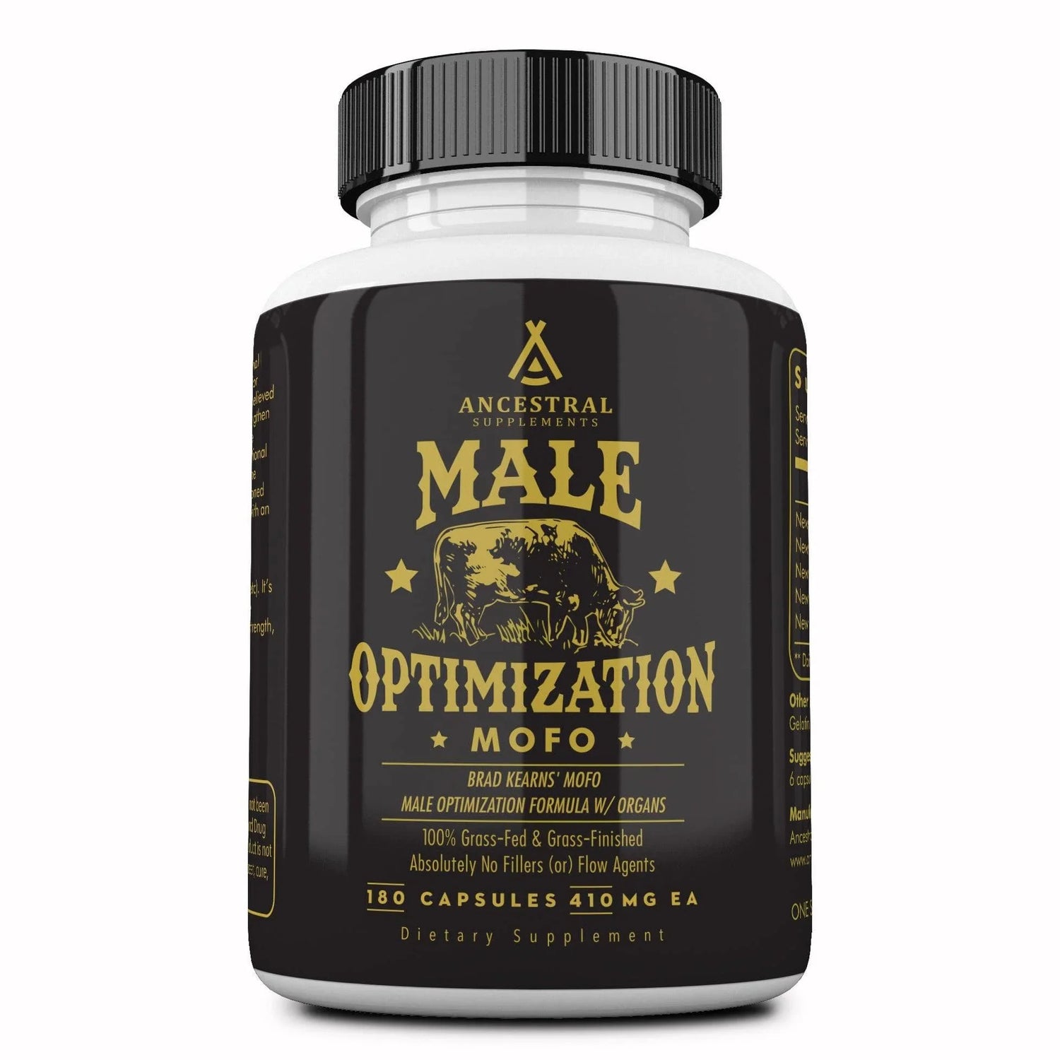 The Male Optimization Formula (MOFO), 180 capsules, is a dietary supplement developed by Ancestral Supplements. The product contains a blend of freeze-dried organ meats, including testicle, prostate, heart, liver, and bone marrow, sourced from grass-fed, pasture-raised bovine in New Zealand.