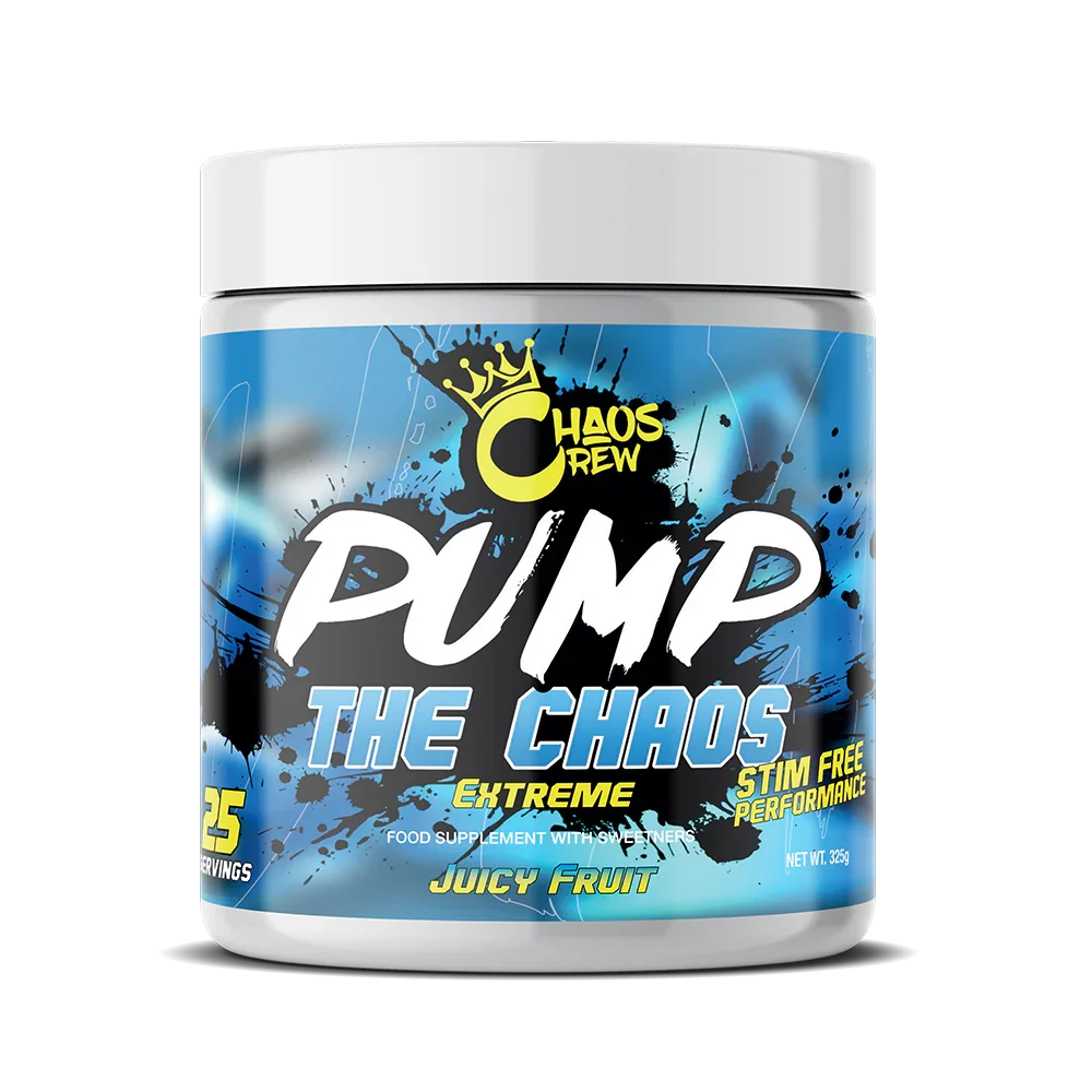 Chaos Crew Pump the Chaos Extreme 325g is a premium nutritional supplement designed to enhance workout performance and support muscle endurance. Formulated by Chaos Crew, this advanced pre-workout powder features key active ingredients such as L-Citrulline, Beta-Alanine, and Agmatine Sulfate, which work synergistically to promote optimal blood flow and reduce fatigue during intense exercise sessions.