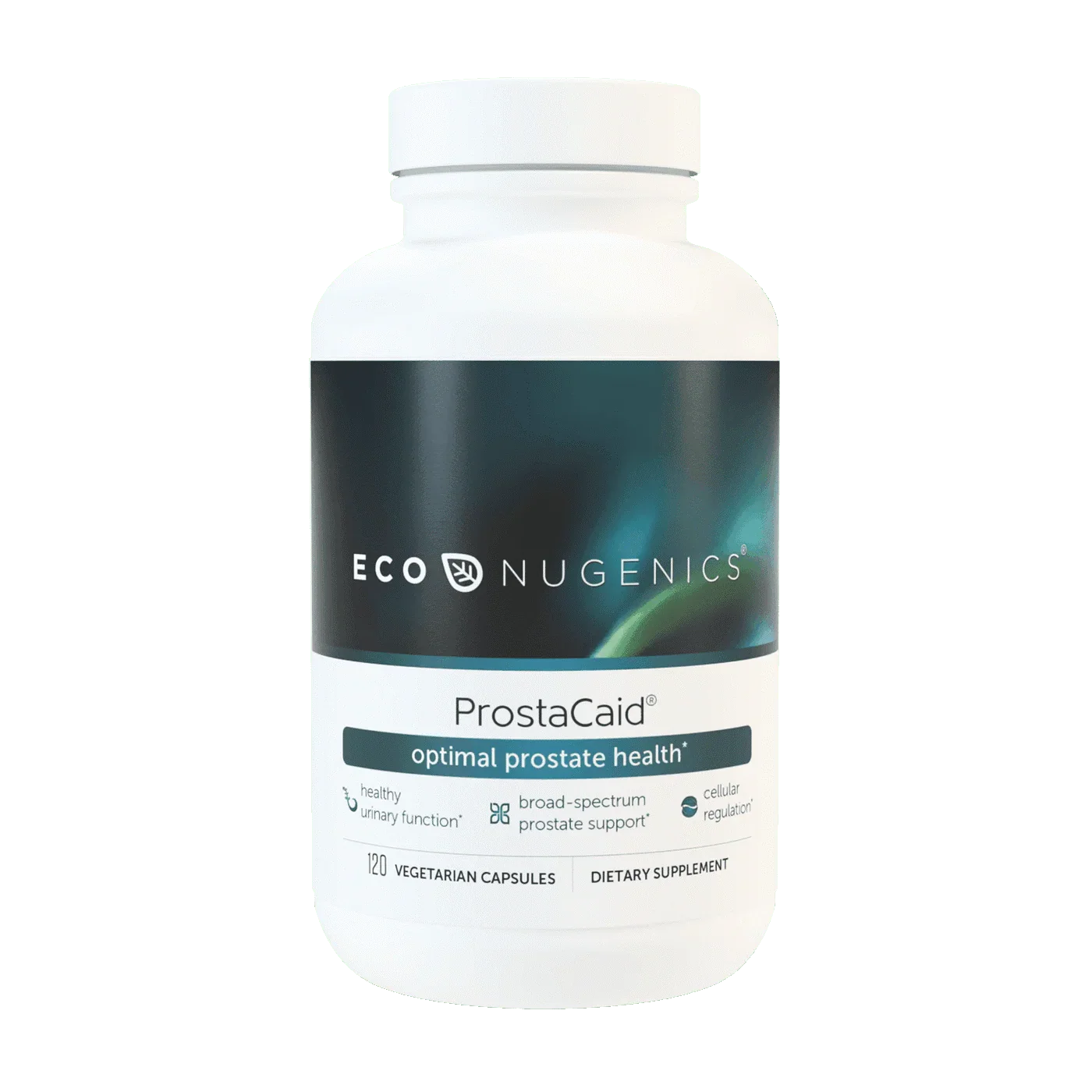 ProstaCaid by ecoNugenics is a dietary supplement specifically designed to support prostate health. Each bottle contains 120 capsules. The formulation includes a blend of vitamins, minerals, and herbal extracts aimed at promoting prostate function and overall wellness.