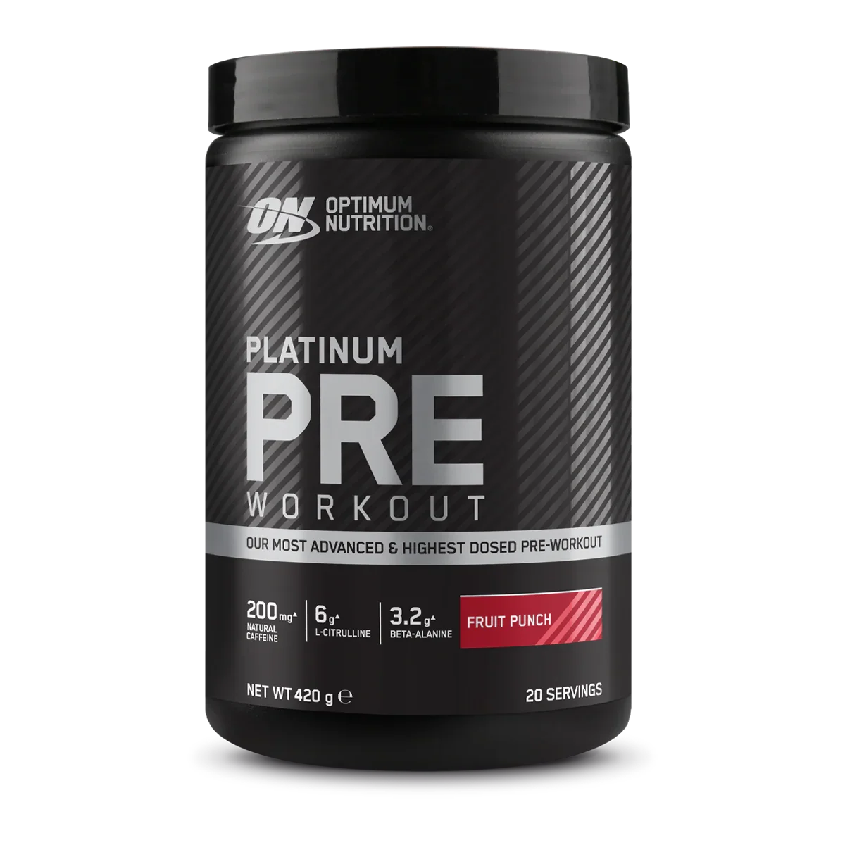 Optimum Nutrition Platinum Pre-Workout 420g Fruit Punch is a premium nutritional supplement designed to enhance workout performance and energy levels. Manufactured by Optimum Nutrition, this pre-workout formula features a blend of key active ingredients, including caffeine, beta-alanine, and citrulline, to support increased focus and endurance during exercise.