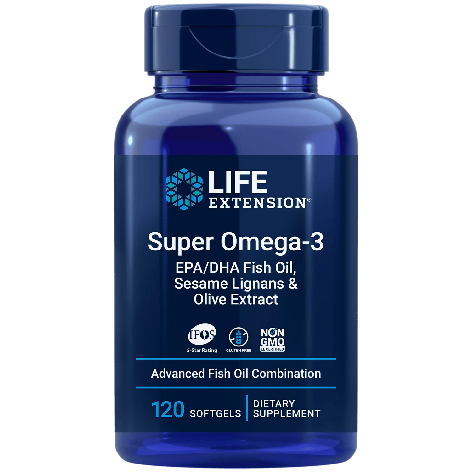Life Extension Super Omega-3, EPA/DHA with Sesame Lignans Olive Fruit Extract - 120 Softgels