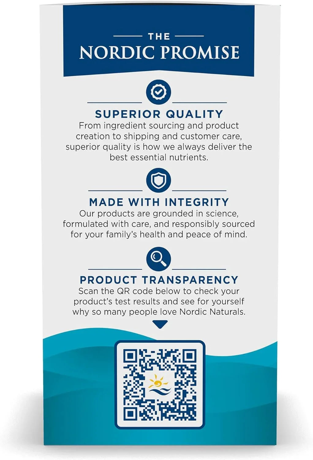 This product is meant to support cardiovascular health, brain health, and boost the immune system. Nordic Naturals uses a proprietary "gold-standard" processing technique to ensure the purity of the product, removing any potential toxins. Additionally, the product is third-party tested for quality assurance and standards of purity and freshness.