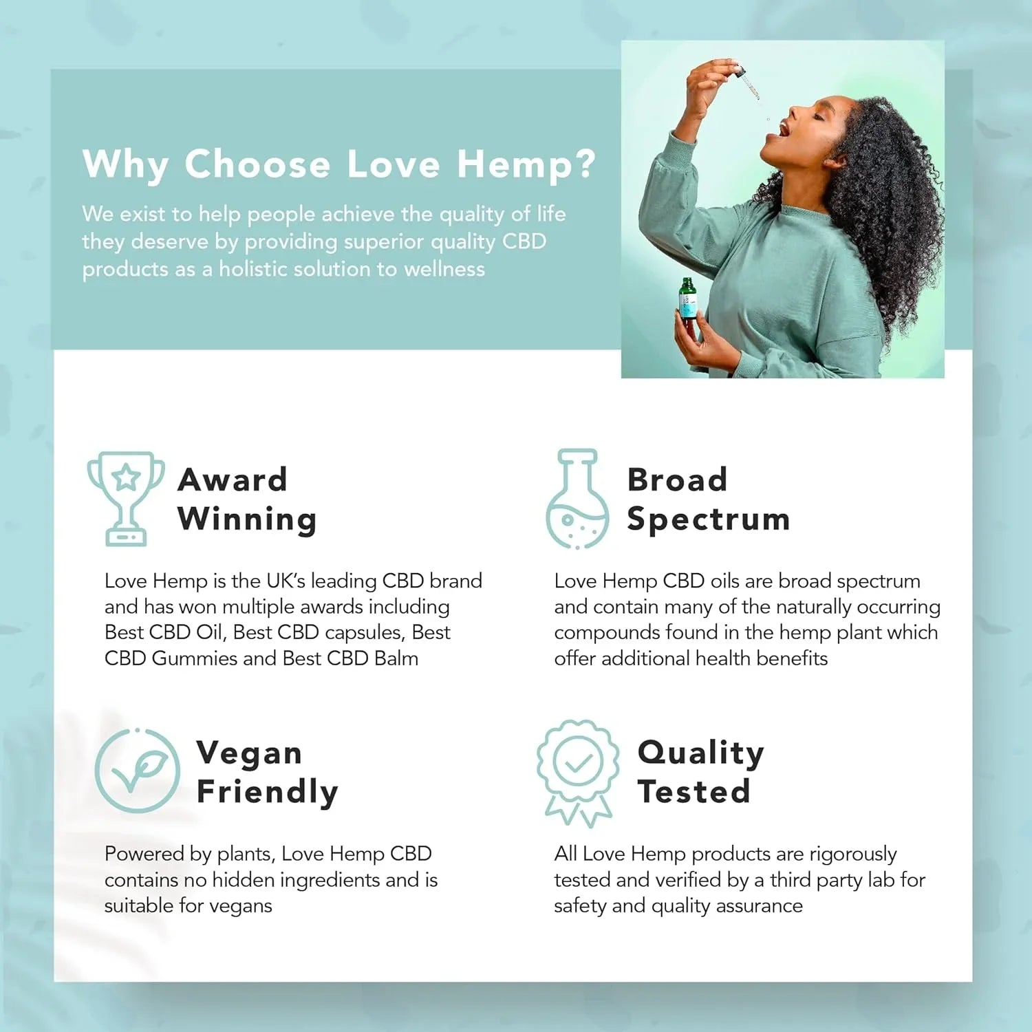 With its combination of careful sourcing, rigorous testing and high-grade CBD, Love Hemp's CBD Liquid Oral Oil Drops provide a safe, effective way of incorporating the potential benefits of CBD into a daily routine.