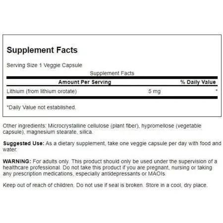 Swanson Lithium Orotate 5 mg 60 Vegetarian Capsules