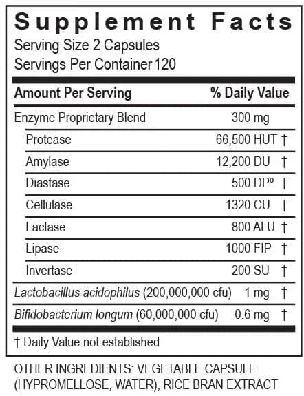 The capsules are easy to swallow and are intended to be taken with meals to have the most impact. The recommended dosage is one to two capsules per meal unless otherwise directed by a healthcare professional. Each bottle contains 240 capsules, providing a minimum of 4-month supply if used as directed.